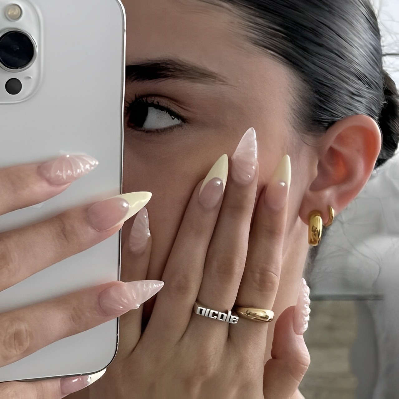 Glazed-Donut Nails là kiểu móng tay nổi bật với lớp sơn tráng men bóng bẩy, mang lại vẻ đẹp hiện đại và cuốn hút. Kiểu nail này đã trở nên phổ biến vào năm 2022 khi cô nàng Hailey Bieber lựa chọn để phối hợp cùng bộ váy cưới đi cùng phong cách trang điểm tinh tế trong sự kiện hôn lễ. Ngay lập tức, kiểu nail này đã tạo nên cơn sốt trong giới mộ điệu bởi vẻ đẹp ngọt ngào và sang trọng. Lớp sơn tráng men tạo hiệu ứng sáng bóng như men gốm, khiến đôi tay trông mềm mại và quý phái. Màu sắc cho kiểu nail này thường là những gam màu pastel nhẹ nhàng hoặc màu trong suốt, mang đến cảm giác nữ tính, dịu dàng và trang nhã, là lựa chọn hoàn hảo cho ngày trọng đại của bất kỳ cô dâu nào.