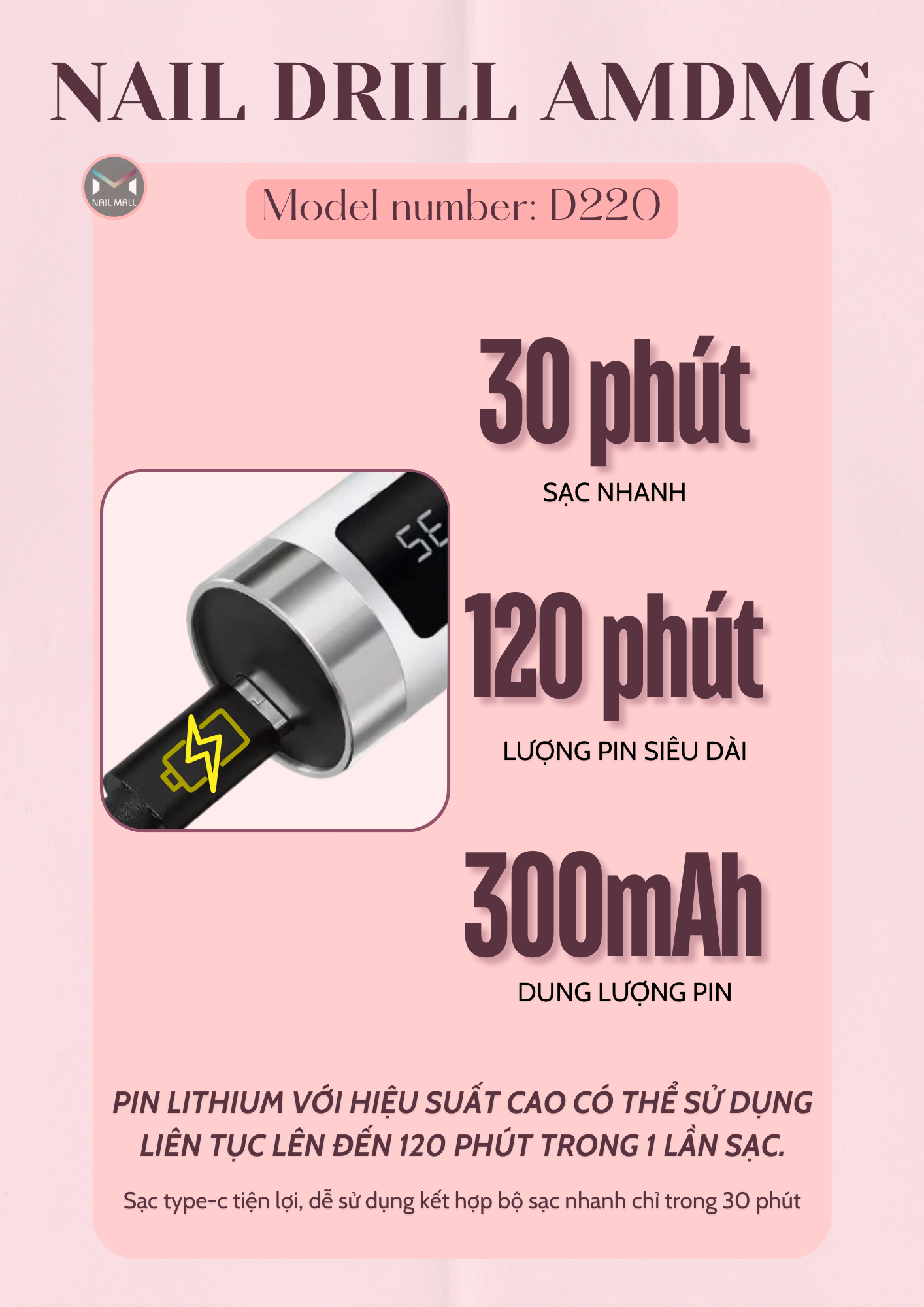 Dòng pin Lithium có tuổi thọ cao, có thể sử dụng liên tục đến 120 phút trong 1 lần sạc.