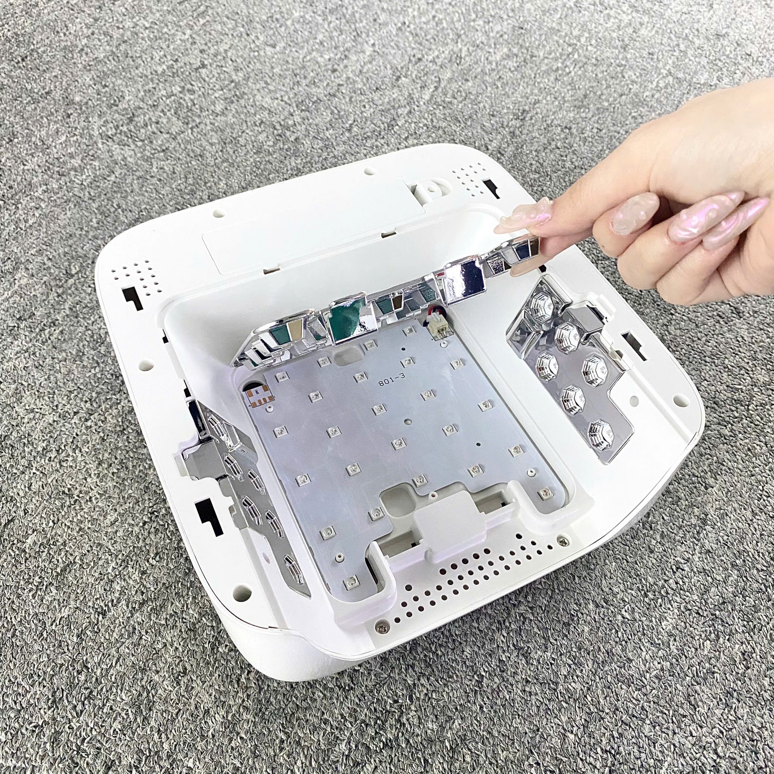 ✔️ Tháo lắp phụ kiện dễ dàng: Đế máy, nắp bảo vệ đèn, bo mạch LED, và pin thay thế thuận tiện.